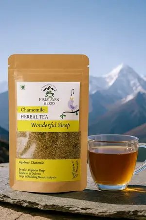 Experience deep relaxation with pure Himalayan Chamomile flowers. This soothing herbal tea is perfect for calming the mind, easing stress, and improving sleep quality naturally.
