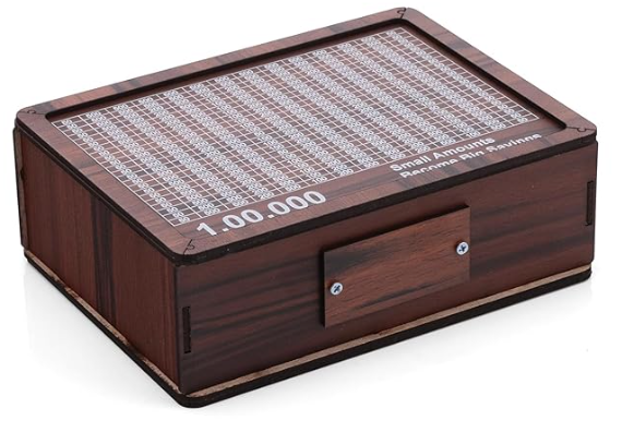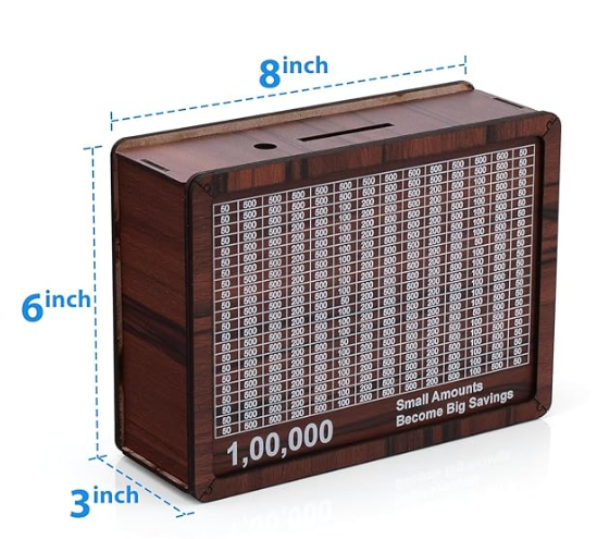 - MOTIVATIONAL SAVINGS TRACKER: Wooden money box featuring a 1 lakh (100,000) savings chart that visually tracks your progress and encourages consistent saving habits
