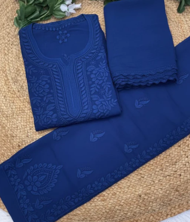 - Fabric: Premium Pure Viscose Georgette (Kurta, Pant, Dupatta & Inner)