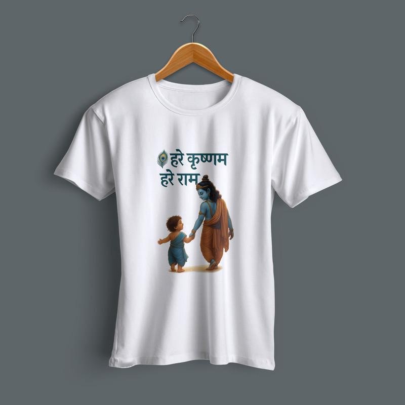 Bring divinity to your style with this Shree Krishna Typography Printed T-Shirt. Made from 100% soft cotton, this white tee is lightweight, breathable, and perfect for daily wear or festive occasions. The bold Krishna design adds a spiritual yet trendy vibe — ideal for Krishna lovers, bhaktas, and fashion-forward men. Pair it with jeans or traditional wear and stand out with devotion and style.