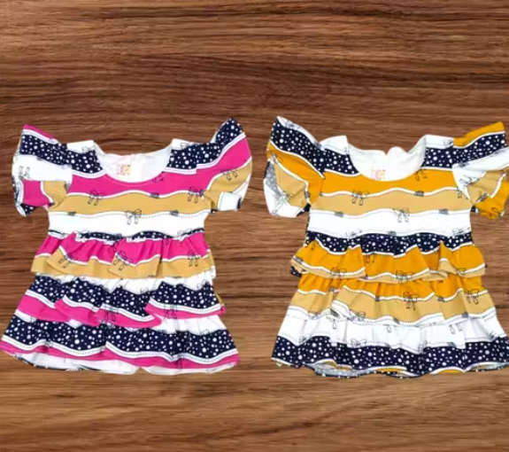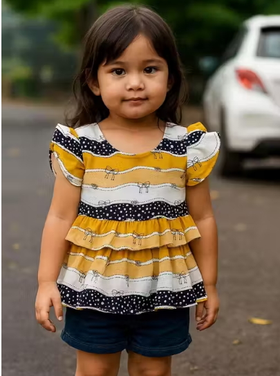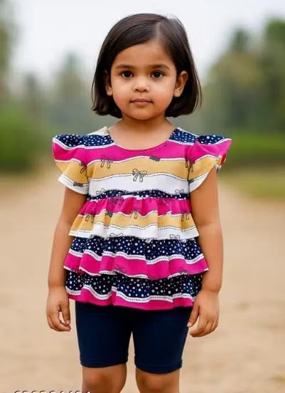- Frill Layered Details: The standout feature of this top is the layered frill detailing — soft, cascading fabric layers that create texture and flair, giving the top a fashionable, youthful vibe ideal for kids.