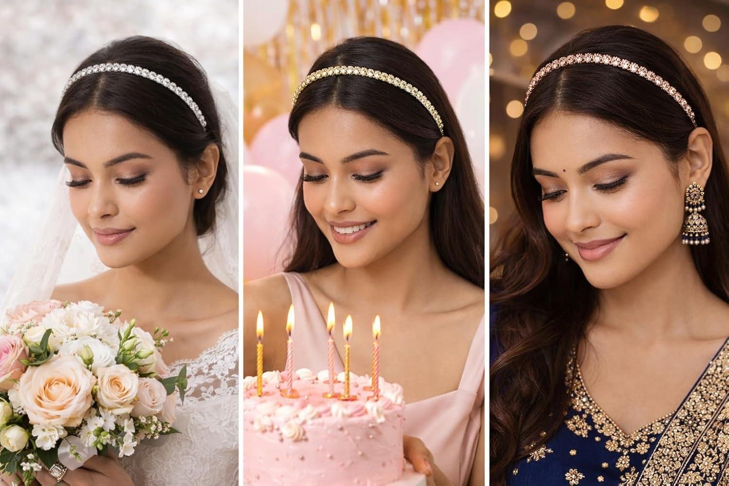 - 💎 3 Color Combo for Every Outfit – Includes Silver, Gold & Rose Gold (Copper) headbands, giving you versatile styling options to perfectly match ethnic, western and party wear outfits.