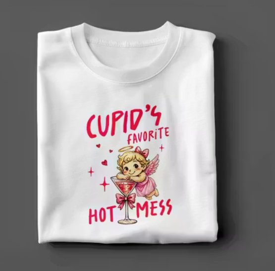 Cupid’s Favorite Hot Mess Printed White Cotton T-Shirt for Women