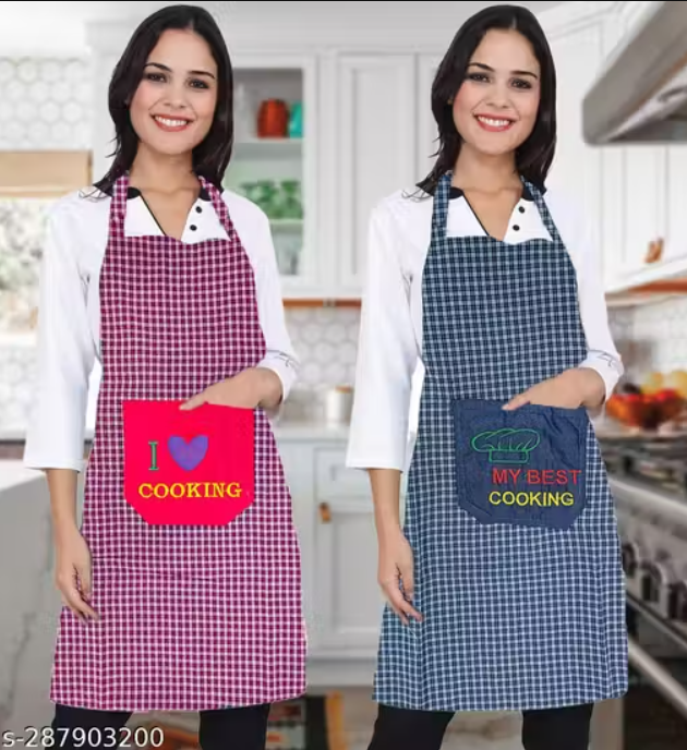 Kitchen Apron- Waterproof /Oil-Proof - Adjustable Aprons with Pockets for Women Men Washable - Pack of 2 (color As per availibility)