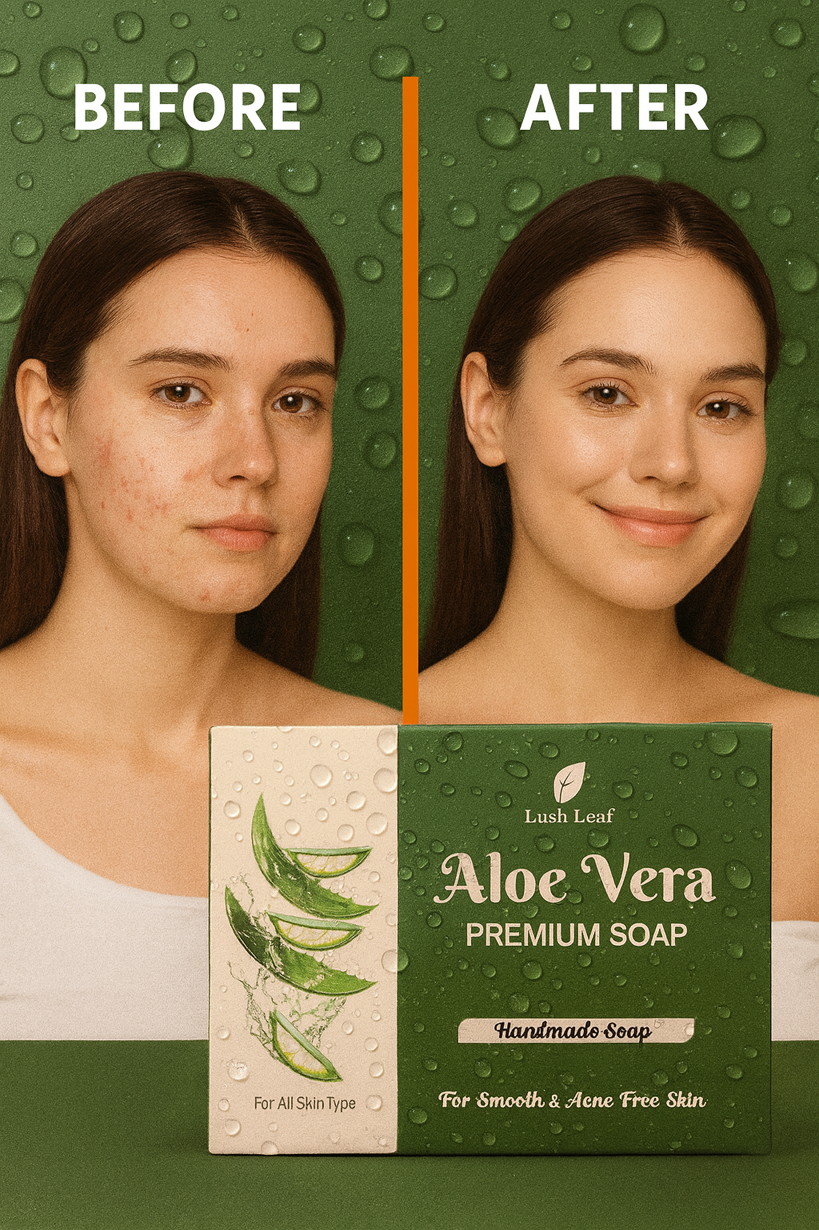 • Lushleaf Aloe Vera Premium Handmade Soap – Premium handmade aloe vera soap (often sold in multipacks), formulated for smooth, acne-free skin and suitable for all skin types.