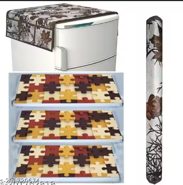 NICASA HD Premium Quality Fridge cover for Top with 1 pec handle and 3 pec fridge mats - Set of 5 piece
