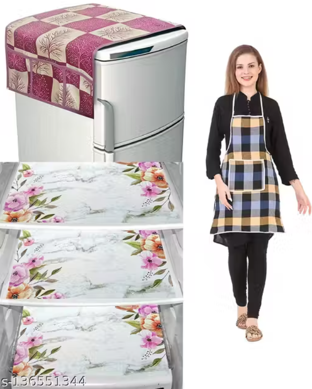 NICASA HD Premium Quality Fridge cover for Top with 3 pec fridge mats and 1 pec of Apron - Set of 5 piece