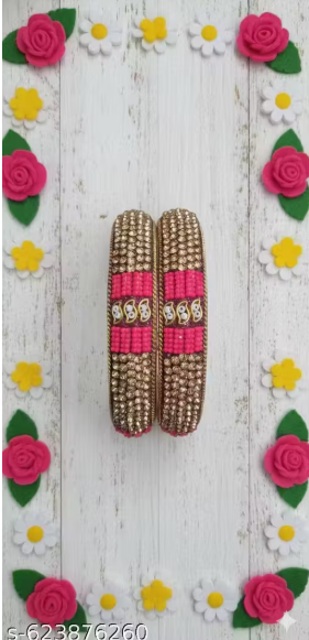 Pink Bangles Gold Beaded Bangles Traditional Indian Jewelry Set of 2 Kada Set