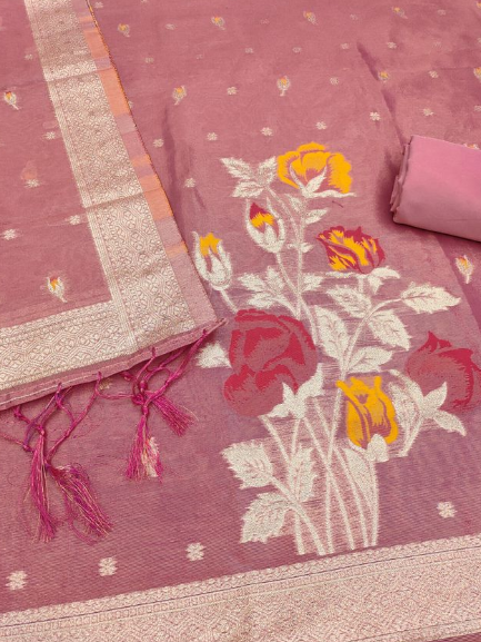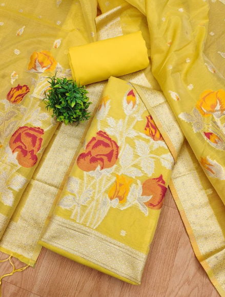 - πͺ©SHIMMER BANARASI ZARI WEAVING DRESS MATERIAL π