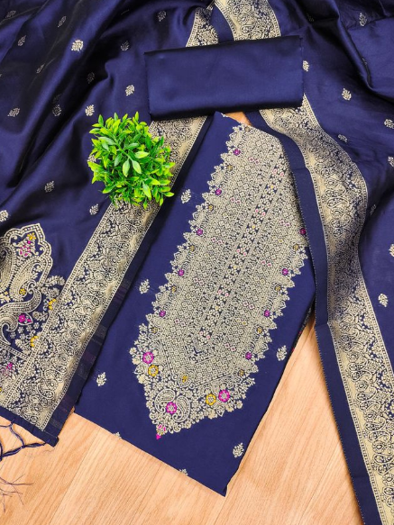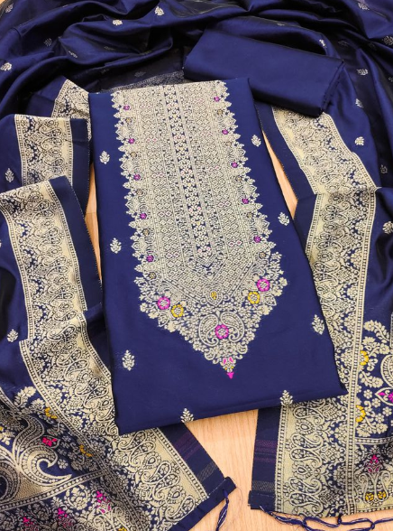 Pure Zari Banarasi Silk Suit Kashmiri Work Dress Material for Woman