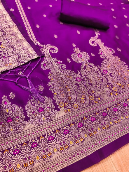 - -Pure zari soft lichi Banarasi silk