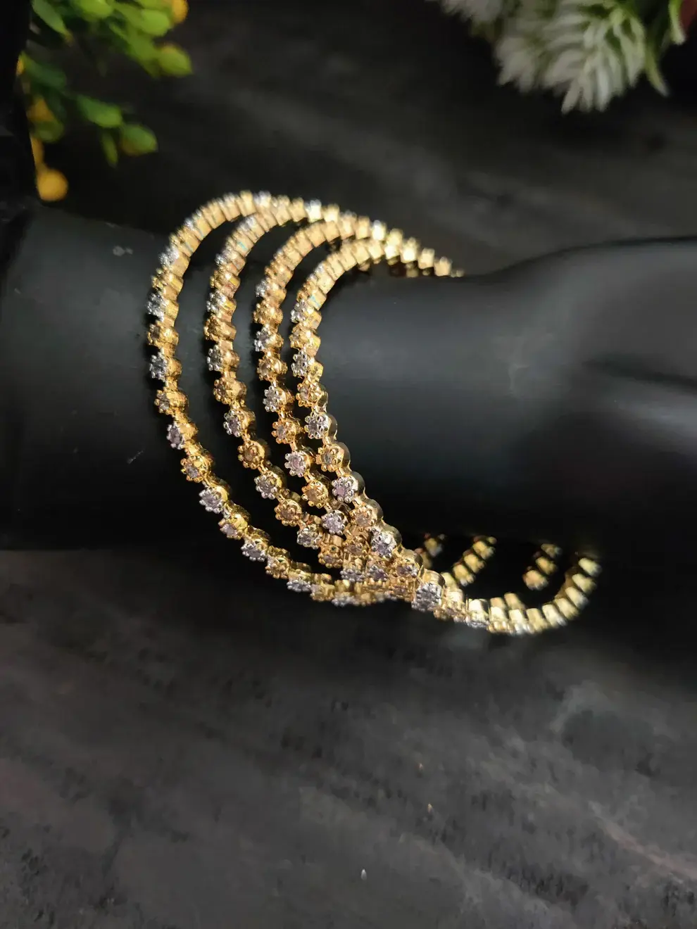 ✨ Gold & Silver Toned Cubic Zirconia Bangles (Pack of 4) ✨