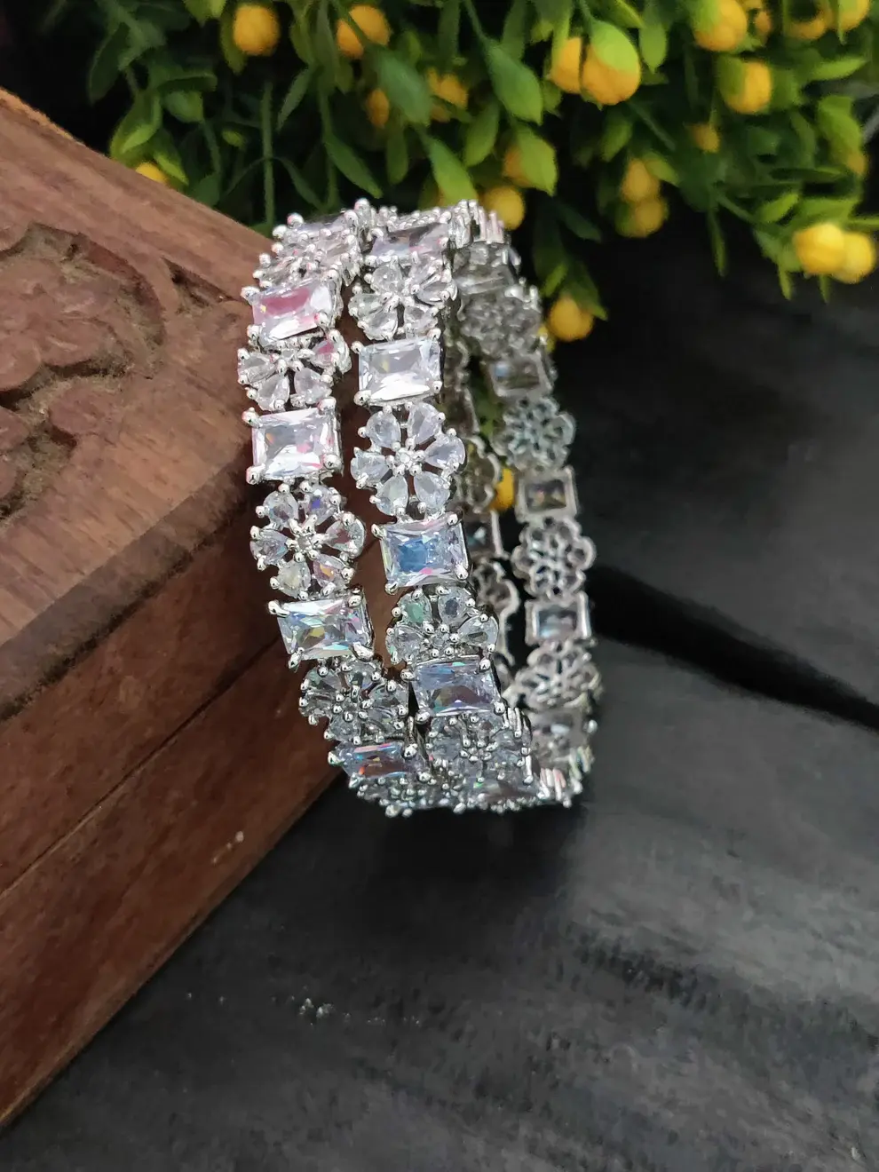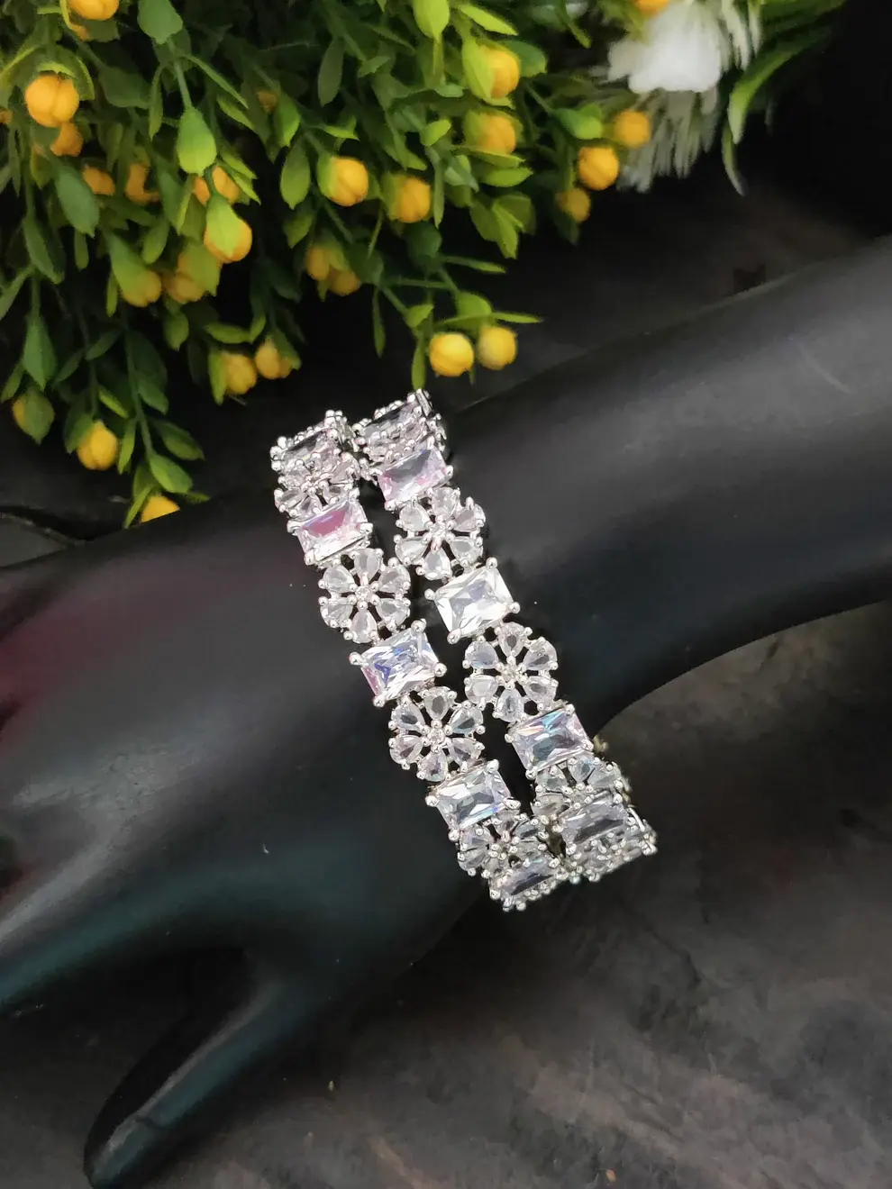 Sonamone Cubic Zircon Flower Design Bangles