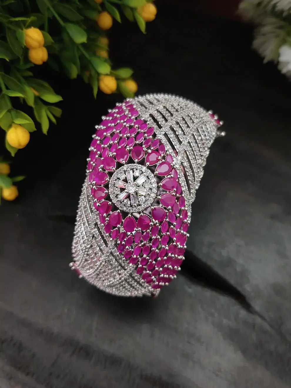 ✨ Silver-Toned White Cubic Zirconia Kada Bracelet – 57 gm ✨