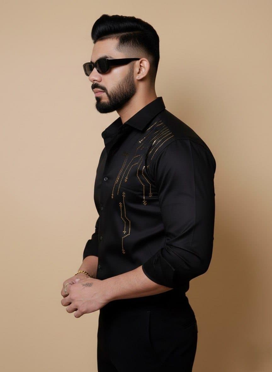 The shirt features a solid or self-design pattern with a classic spread collar, giving it a clean and sophisticated appearance. Whether you're heading to the office, meeting friends, or attending a casual event, this shirt easily complements jeans, chinos, or trousers for a versatile outfit