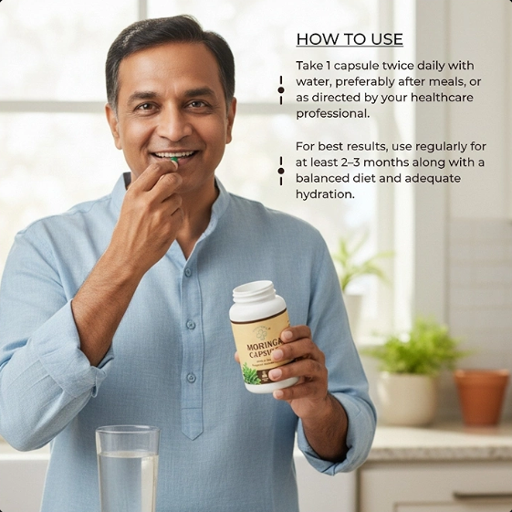 - Trustmeds Pure Organic Moringa Leaf Capsules 500mg (60 Veg Capsules) are a powerful, high-quality way to unlock the full benefits of the Moringa Oleifera leaf. Known globally as the 'Miracle Tree,' our formula provides essential vitamins, minerals, and antioxidants that are vital for overall body function. Our high-potency, Vegan, Non-GMO capsules make it convenient to integrate this comprehensive superfood into your daily regimen.