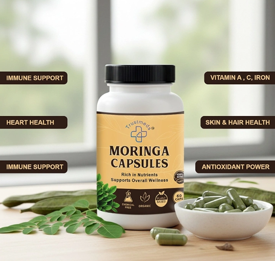 Trustmeds Pure Organic Moringa Leaf Capsules – 500mg (60 Veg Capsules)