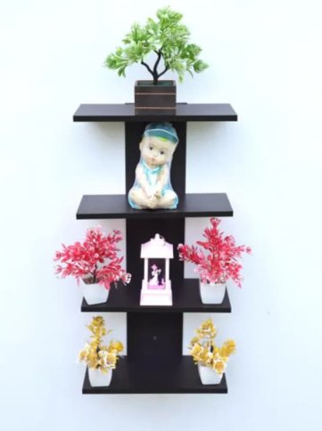 Featuring a multi-tier design, the shelf provides ample space to display showpieces, idols, indoor plants, photo frames, candles, or collectibles. Its sleek and compact structure helps save floor space while creating an eye-catching vertical display on your wall.
