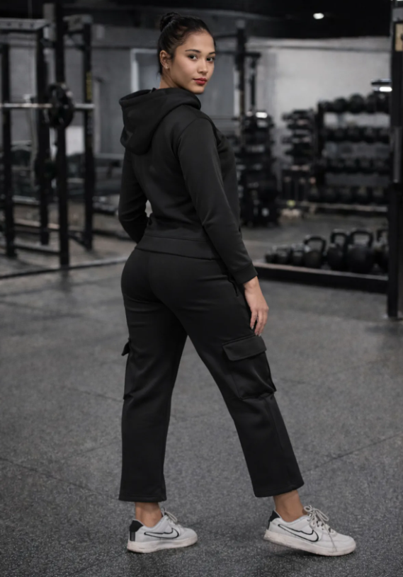 - Design: Coordinated tracksuit with matching jacket and track pants for a sporty look.