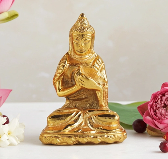 Aluminium Gold Buddha Statue – Premium Showpiece for Home & Office