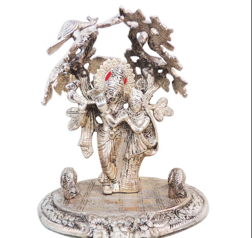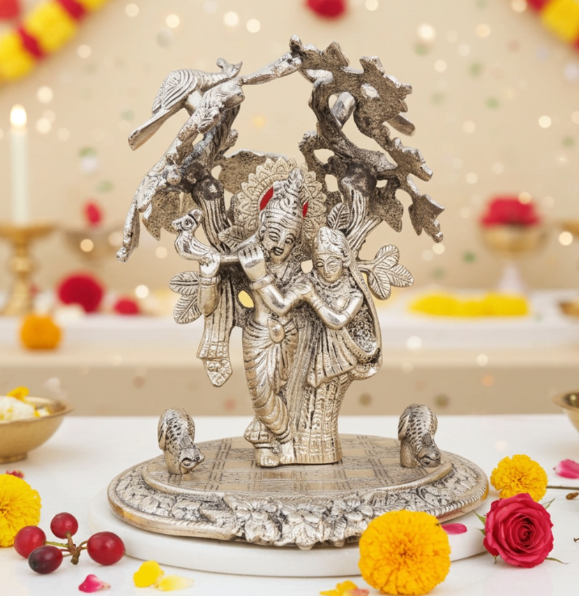 Aluminium Radha Krishna Idol – Silver Finish Religious Showpiece