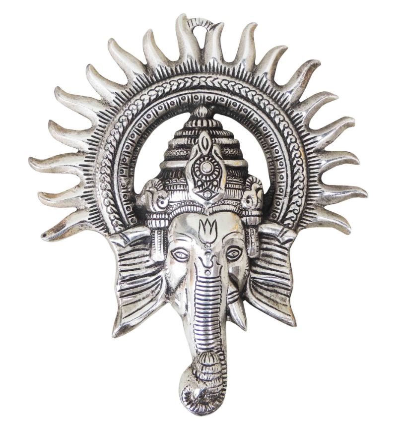 Aluminium Showpiece Ganesh Circle Wall Hanging Silver