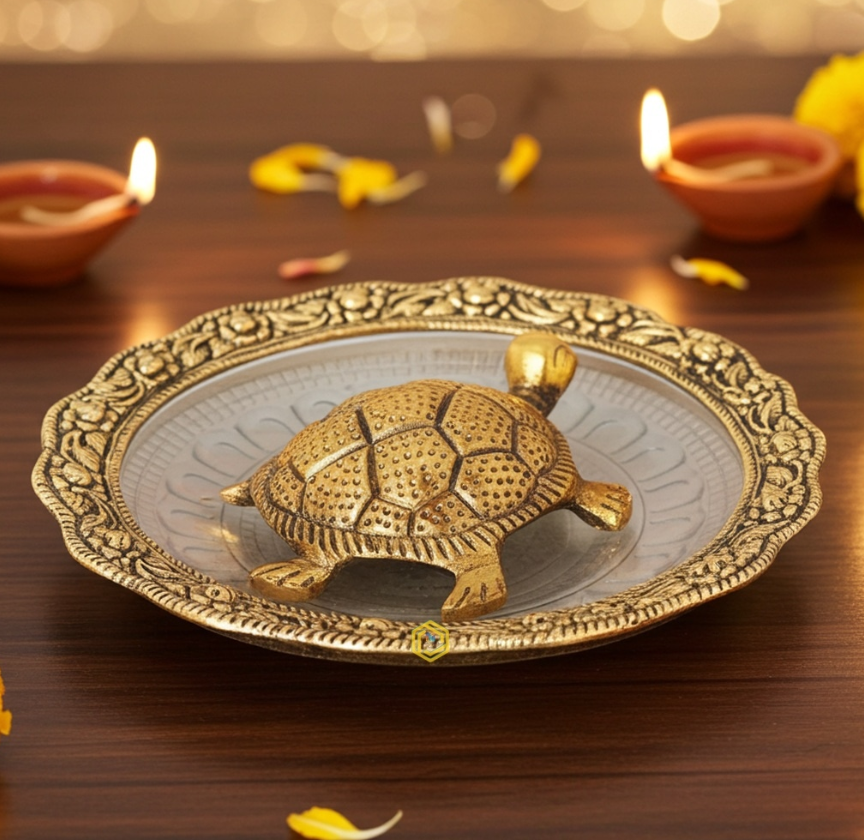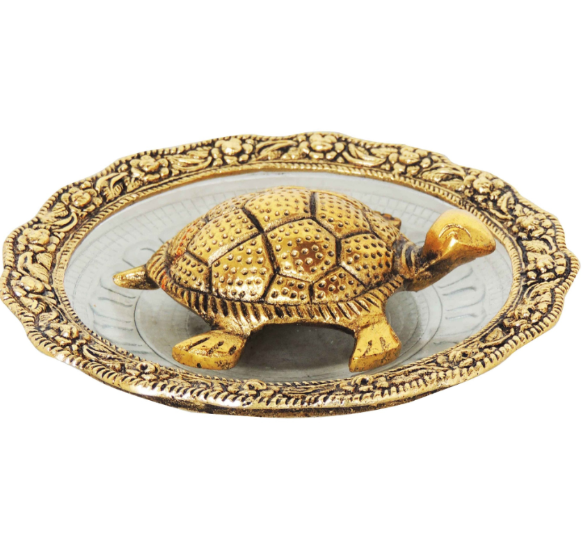Aluminium Showpiece Tortoise Statue With Glass Plate