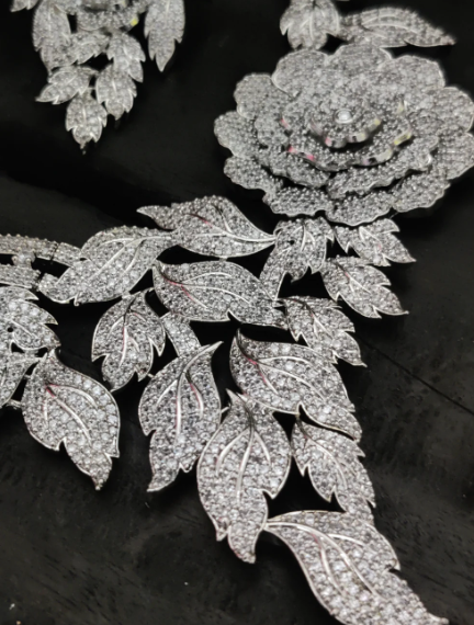 - Firaki White American Diamond Necklace Set – Elegant and statement-worthy set perfect for weddings or receptions.