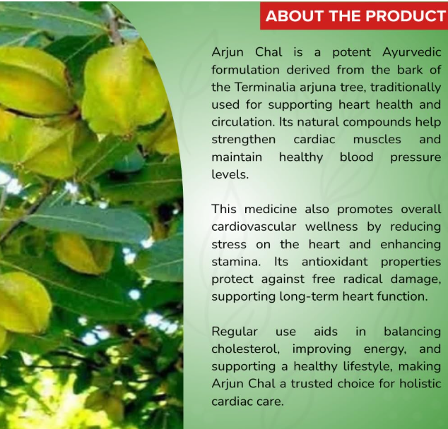 - arjun chal drops stimulates blood circulation, increases oxygen flow to the heart, purifies the blood, lowers blood pressure, and reduces cholesterol levels. arjun chal drops can regulate the hormone cycle. arjun chal improve energy levels in the body and stimulates the stamina