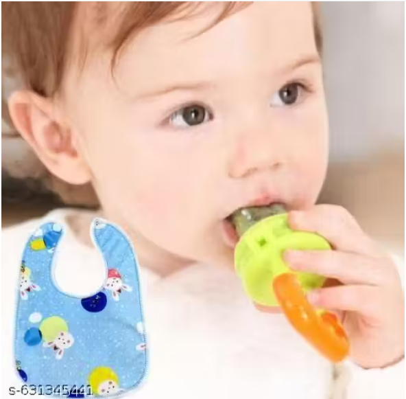 Make mealtime safe, fun, and mess-free with this Baby Feeding Set, which includes a convenient fruit feeder and a soft baby bib. The fruit feeder allows your little one to enjoy fresh fruits safely while soothing their gums, and the bib keeps clothes clean during feeding.