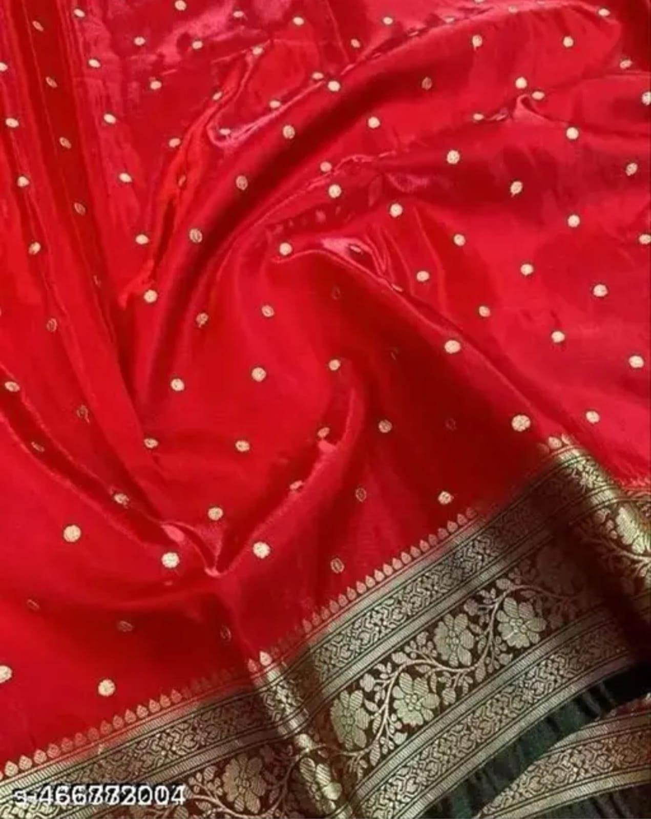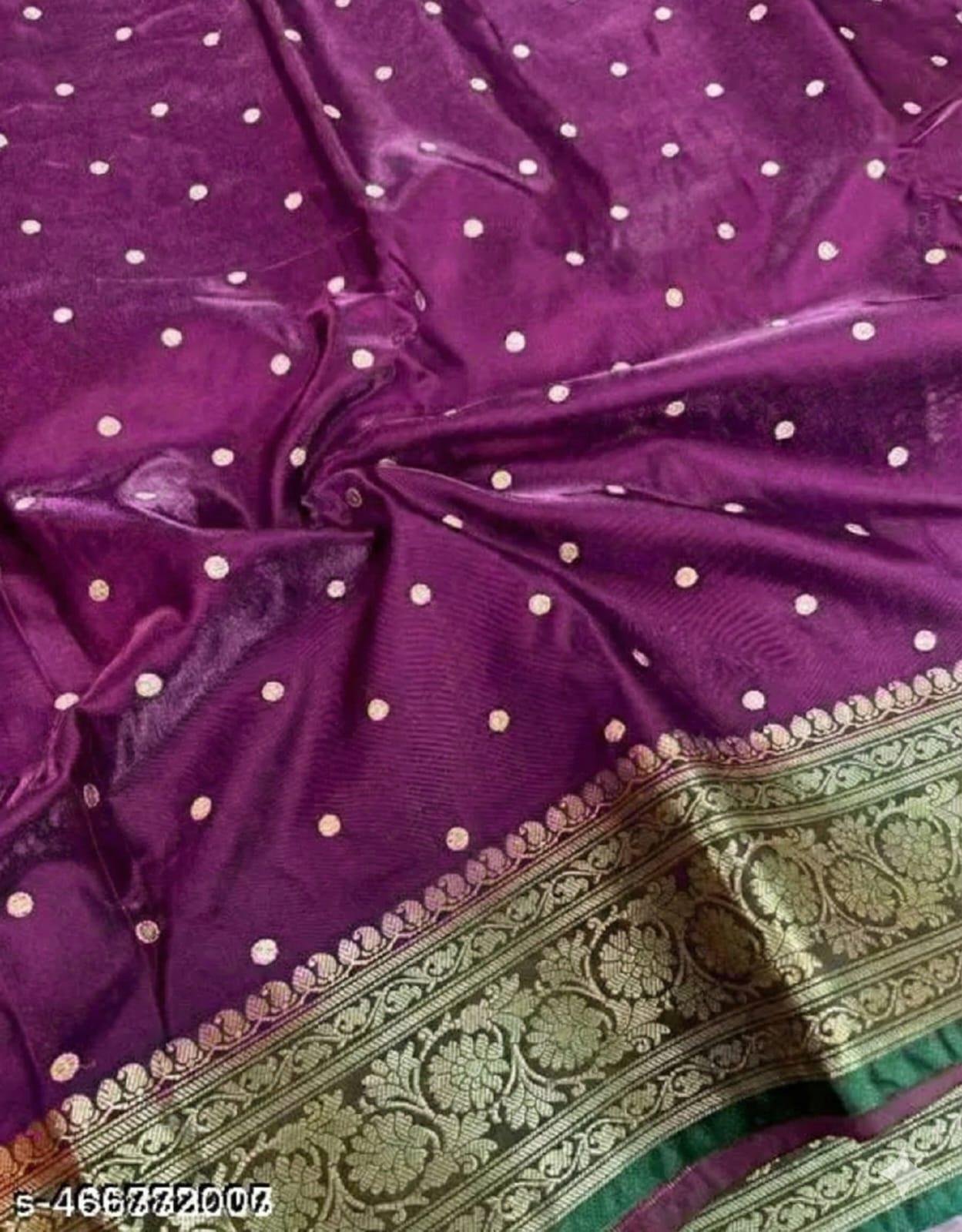 * Premium Banarasi weaving with rich gold zari