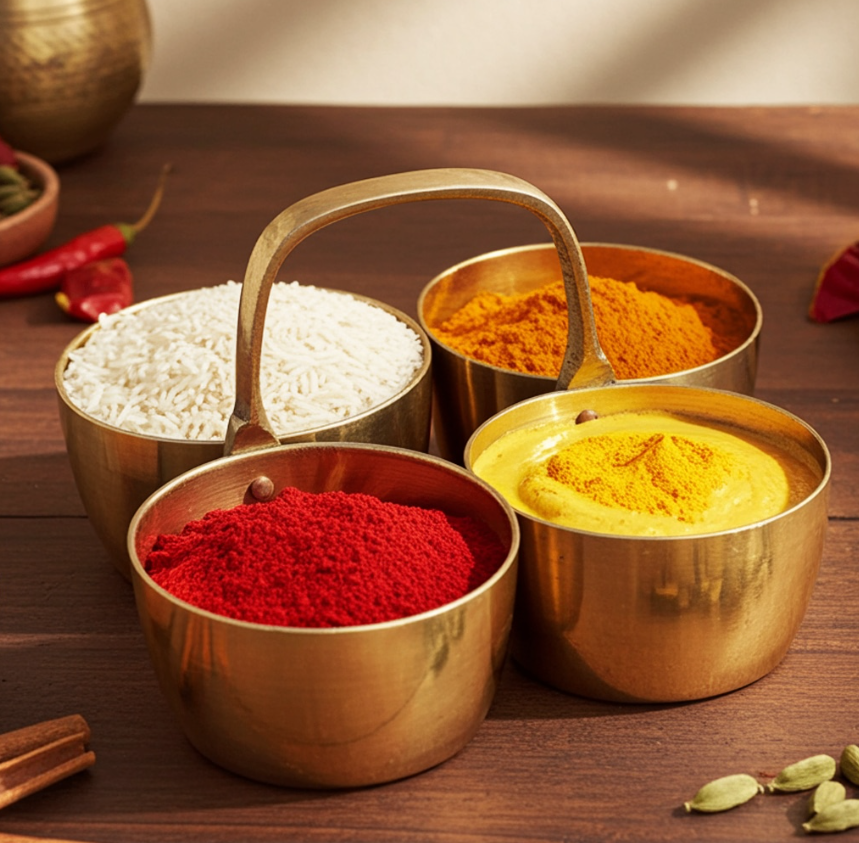 Brass Chokta Small 4 Bowl Combined