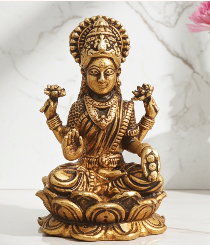 Brass Showpiece Laxmi Ji God Idol Statue, Made From Machine