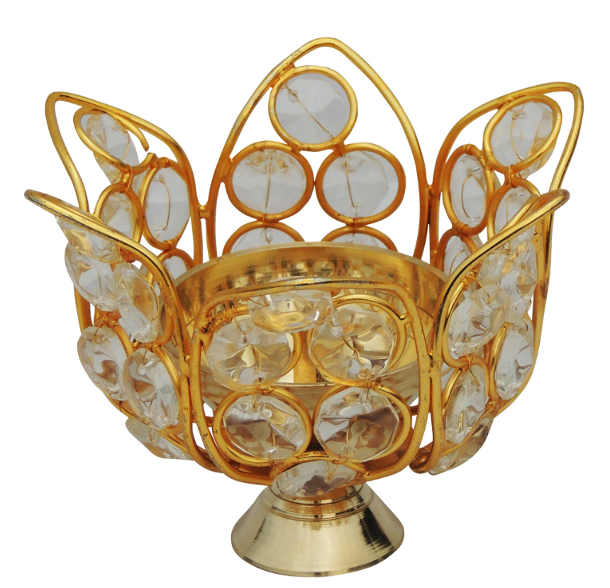Brass Table Decor Oil Lamp Deepak With Crystal - Puja Deepak for Religious Use
