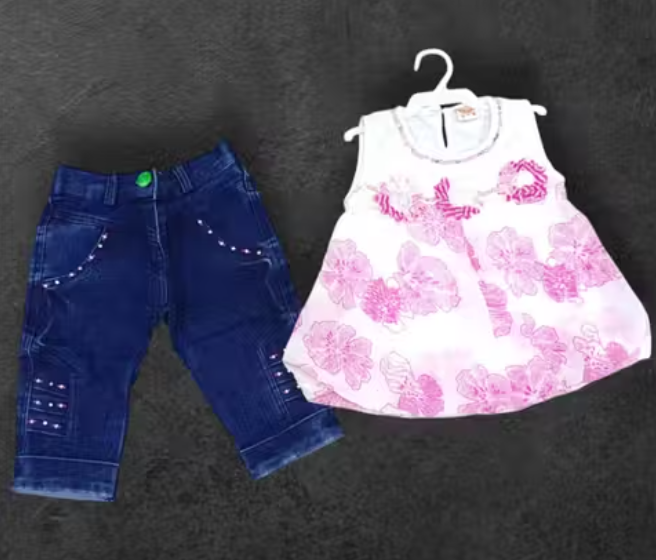 - Sleeveless Printed Chiffon Top: A soft, airy chiffon top with a pretty printed design thatโs lightweight and breathable โ great for keeping your child cool and stylish in the heat.