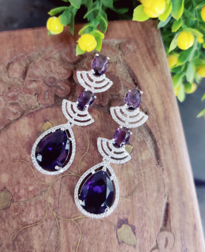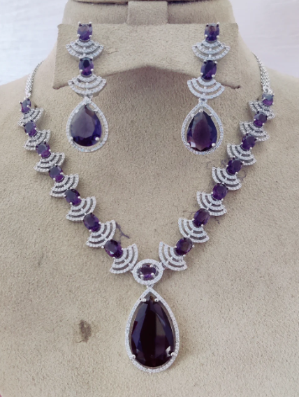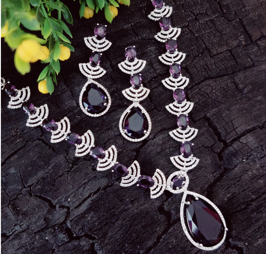 Make a regal style statement with this exquisite CZ Royal Violet Tear Drop Necklace Set, crafted to add elegance and royal charm to your look.