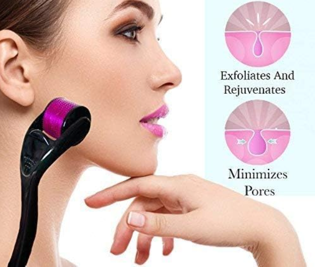Derma Roller System, 0.5 mm Titanium Needles, 540 Pins, Hair Growth and Repair Tool, Black and Pink (pack of 4, Medium)