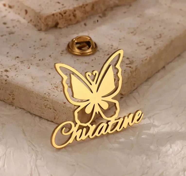 Elegant Custom Butterfly Brooch with English Name