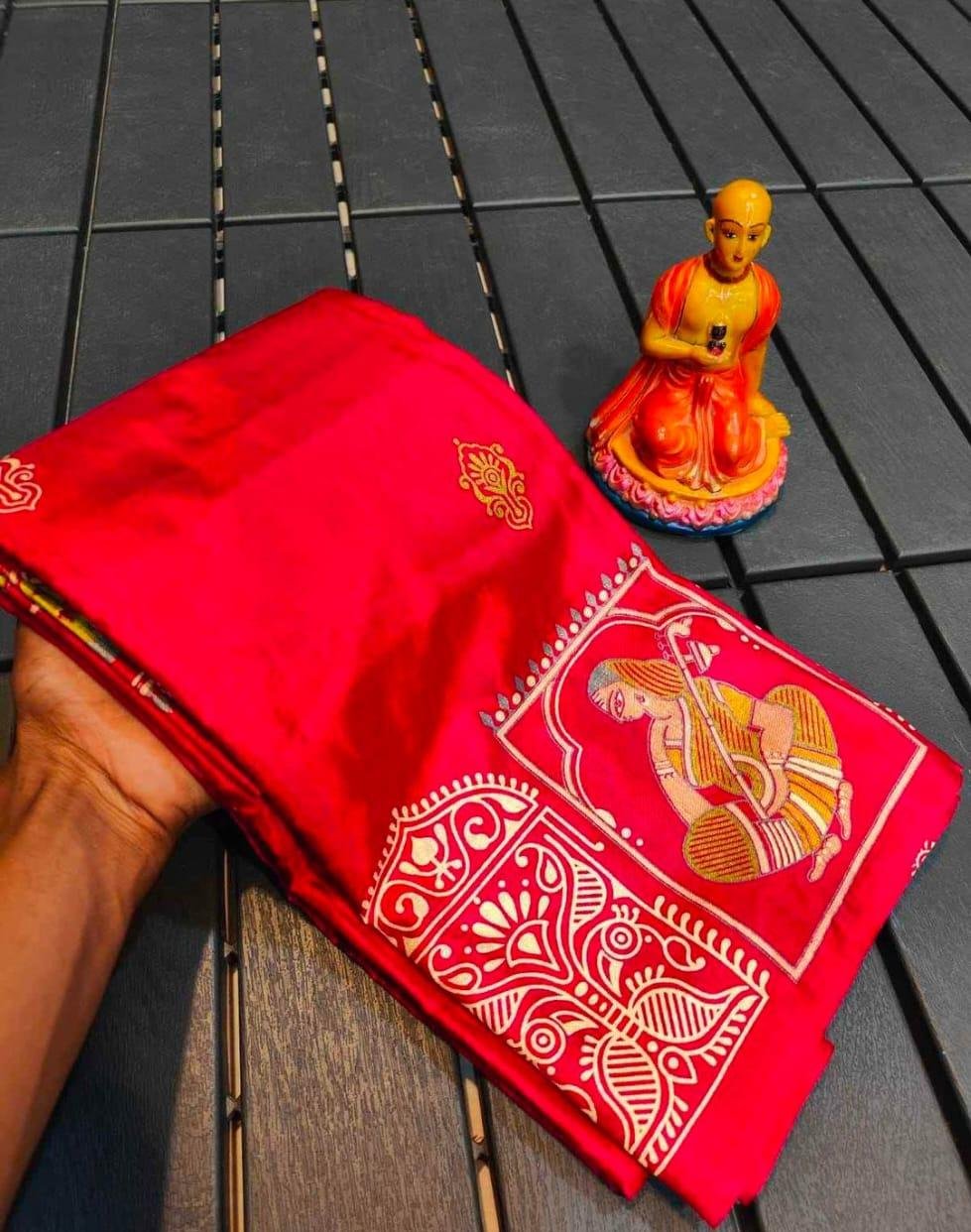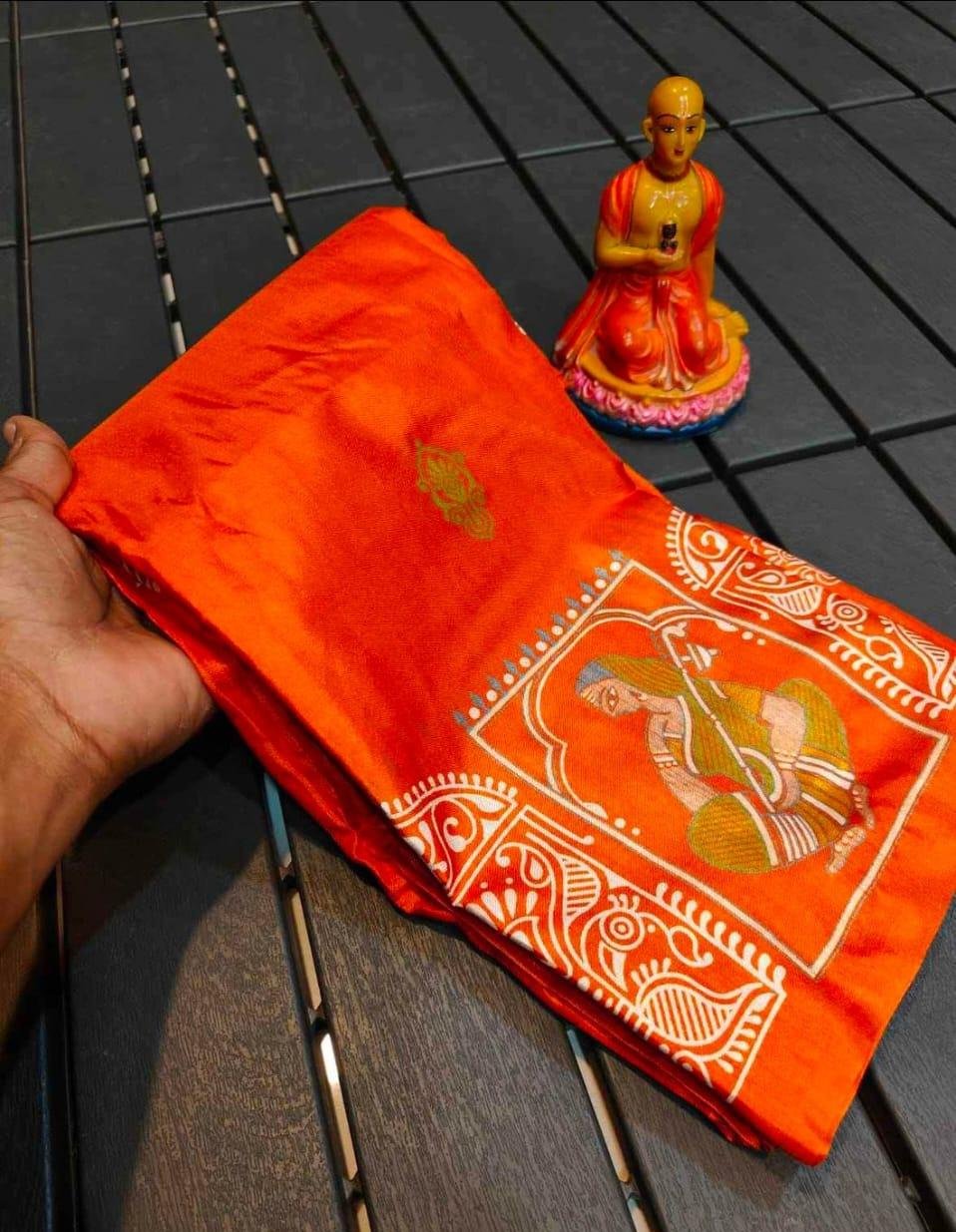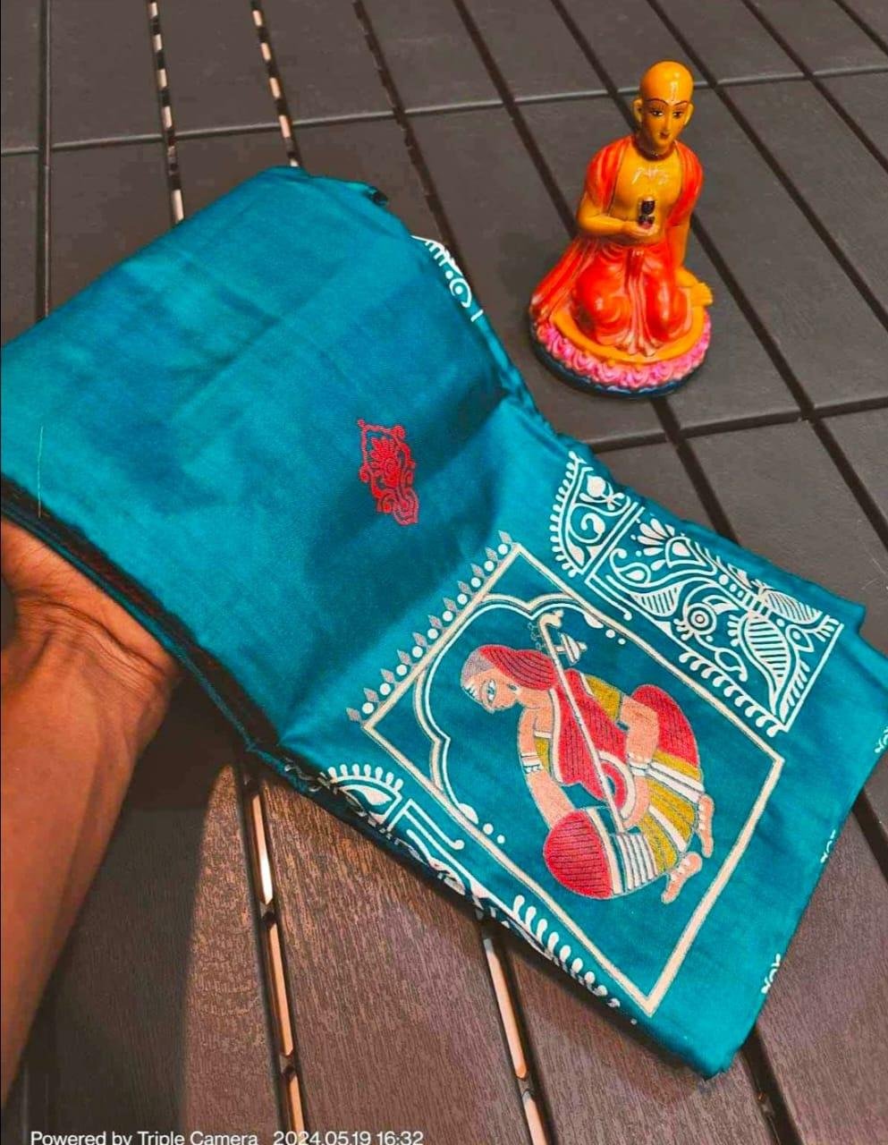 The saree is meticulously handcrafted by skilled artisans, showcasing intricate weaving techniques that elevate its beauty and craftsmanship. Its free-size design ensures a perfect drape for all body types, allowing you to experience the graceful flow and fluidity that Tussar silk is known for. Whether you’re attending a wedding, a festive celebration, or a special evening, this saree is sure to make a statement with its refined yet versatile style.
