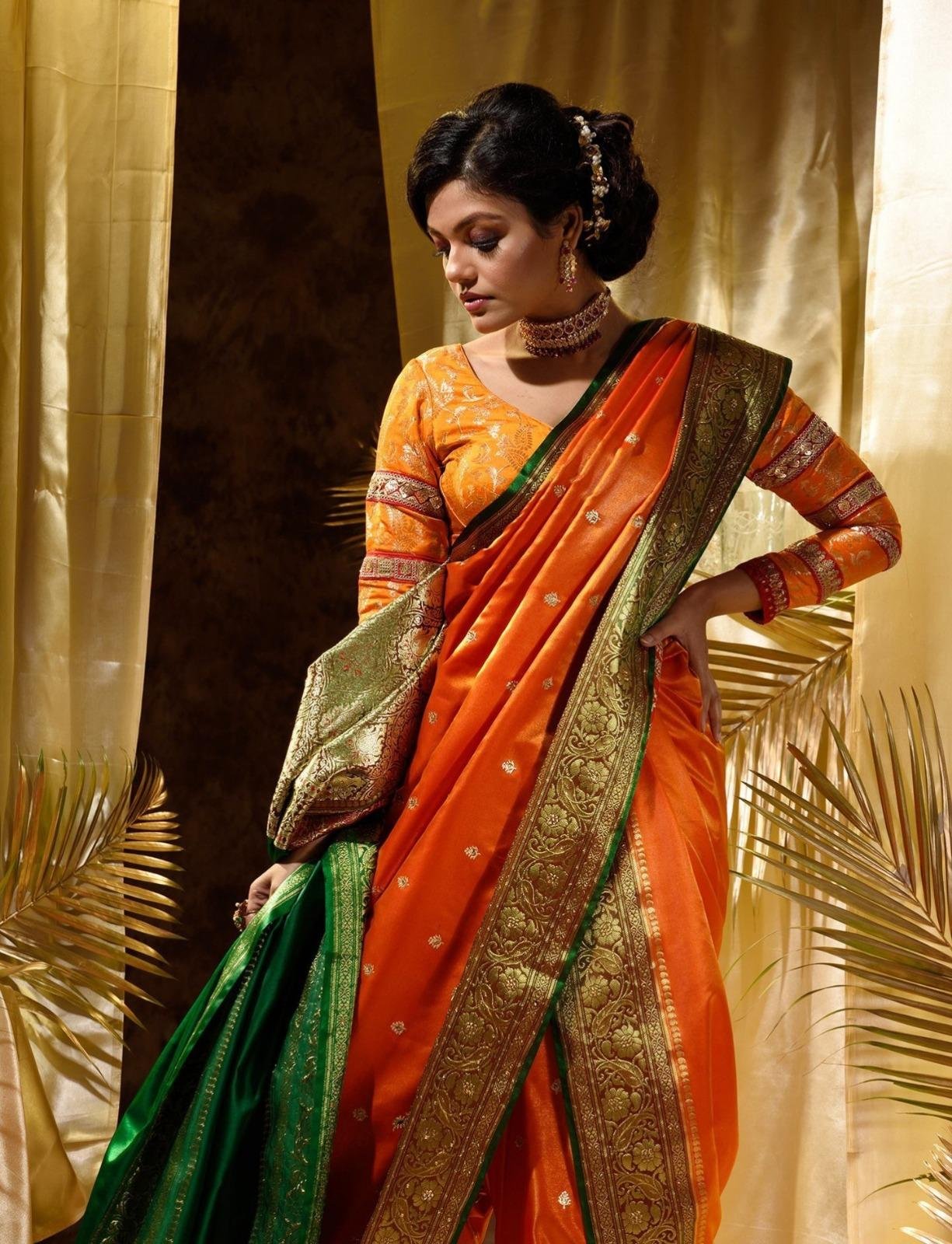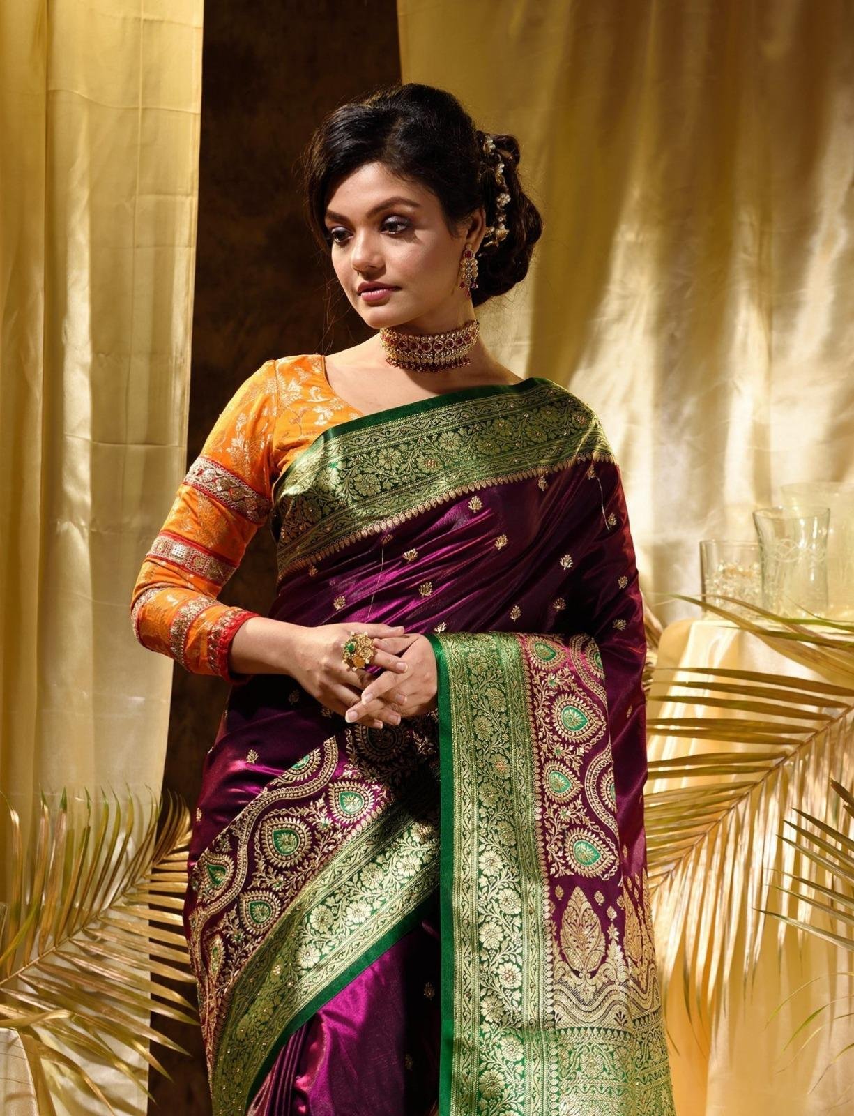 This Banarasi Satin Silk Saree with Blouse is the perfect blend of heritage, style, and comfort, making it a must-have for your ethnic collection.