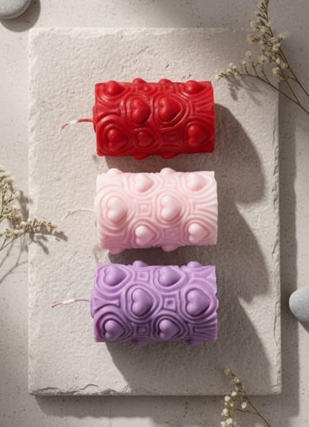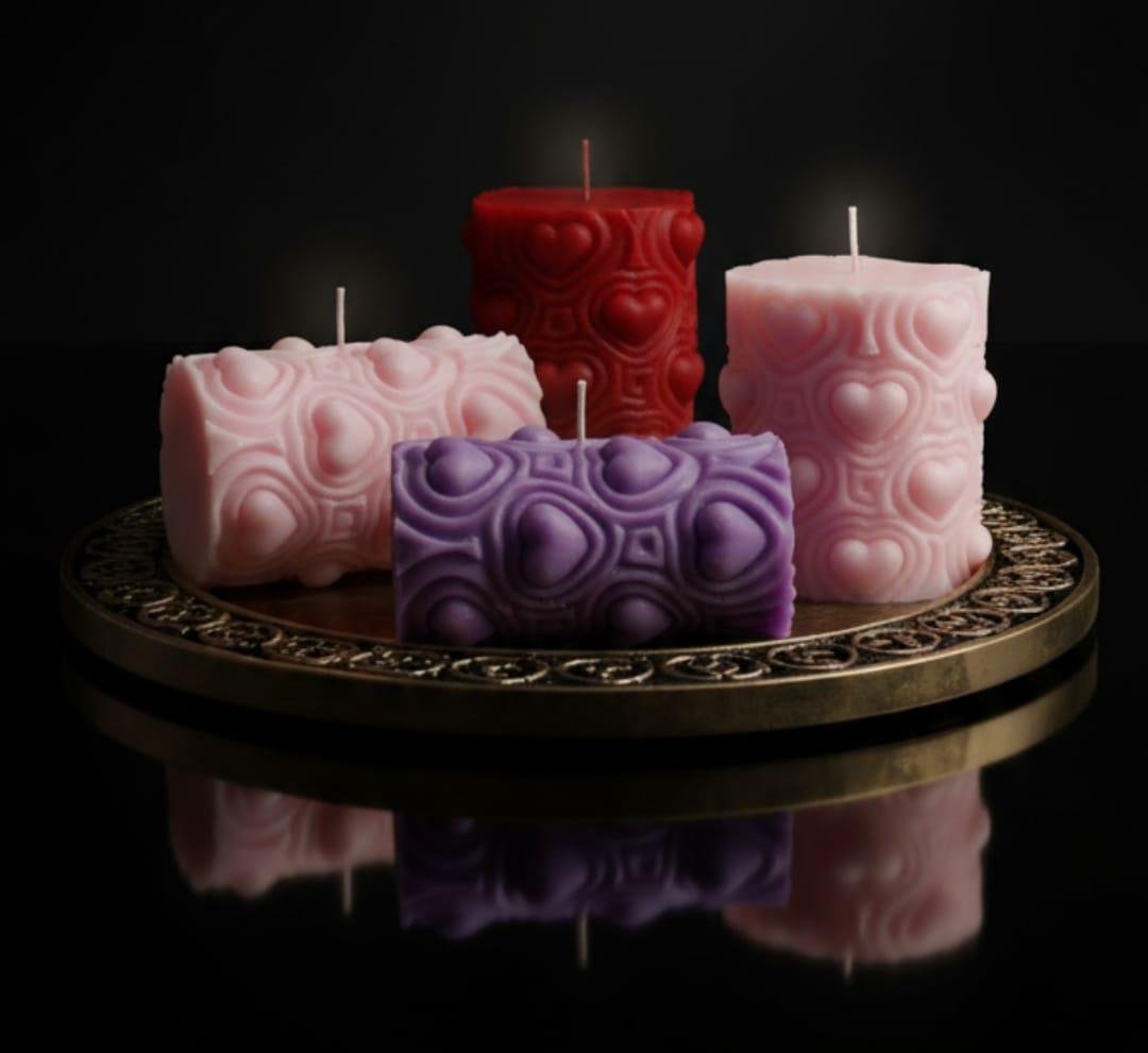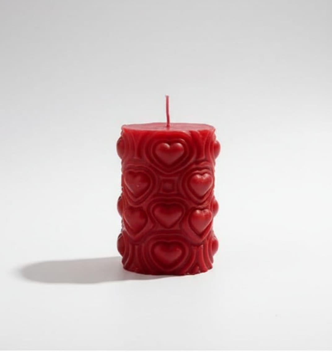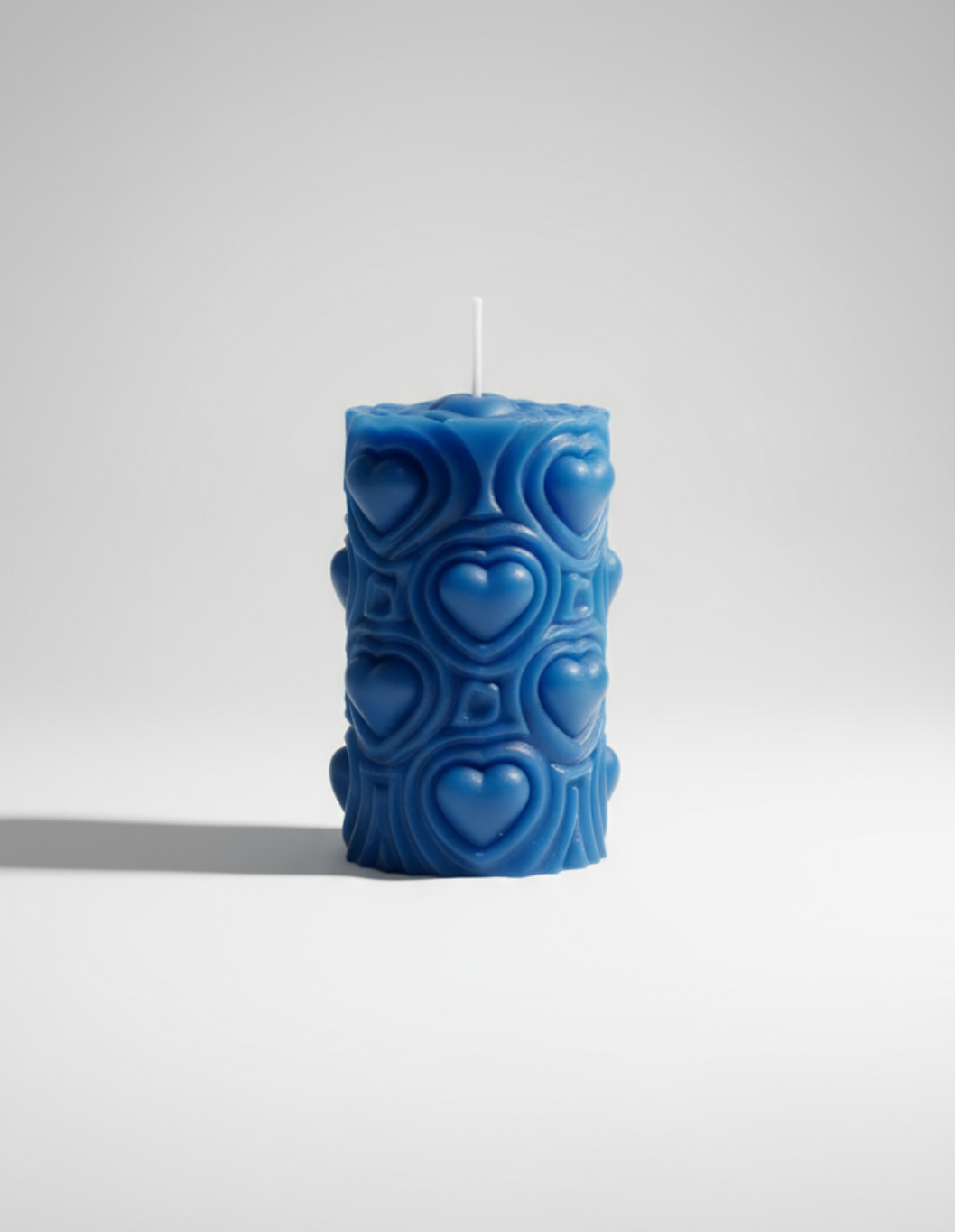 This beautifully crafted blue heart-pattern pillar candle adds charm and elegance to any space. Designed with embossed heart motifs all around, it brings a romantic and aesthetic touch to your home décor. Made from high-quality wax with a clean-burning wick, this candle is perfect for ambience lighting, gifting, festive décor, or special occasions. Its vibrant blue color and artistic design make it an eye-catching décor piece for living rooms, bedrooms, events, or photo setups.
