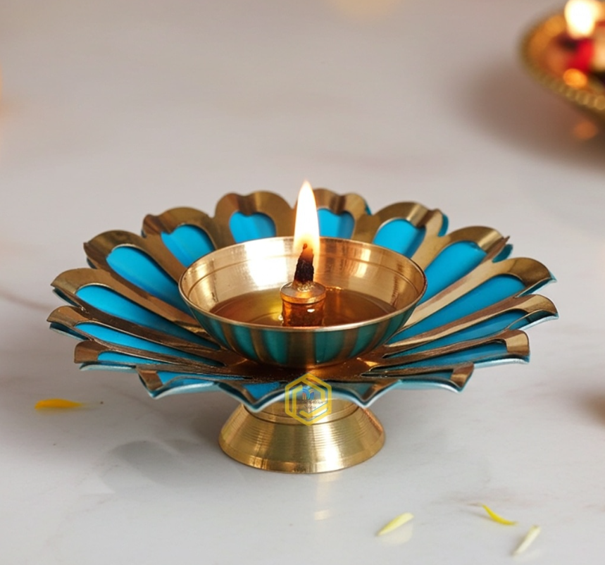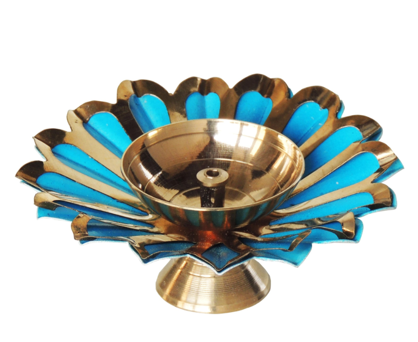 Iron & Brass Deepak Color Blue 4 Inch