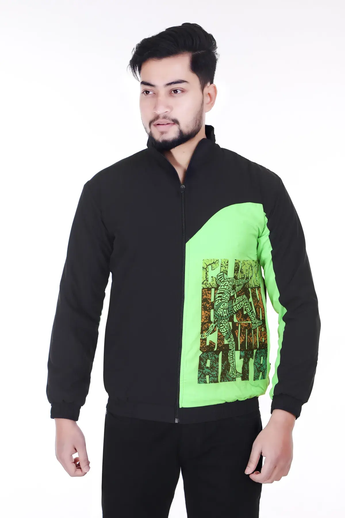 Stay comfortable and stylish with this Light Green Lycra Blend Polyester Sports Jacket for Men. Crafted from premium stretchable fabric, this jacket offers excellent flexibility, breathability, and long-lasting durability. The Lycra blend polyester material ensures a soft feel while allowing easy movement during workouts, outdoor activities, or daily wear.