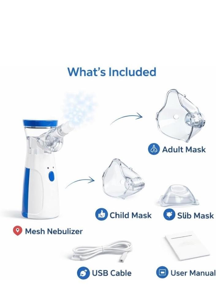 Nebulizer, Portable Mesh Nebulizer for Adults & Kids, Mini Handheld Ultrasonic Inhaler, Low-Noise Steam Vaporizer for Home & Travel, Wireless Vaporizer Machine With Respiratory Mask