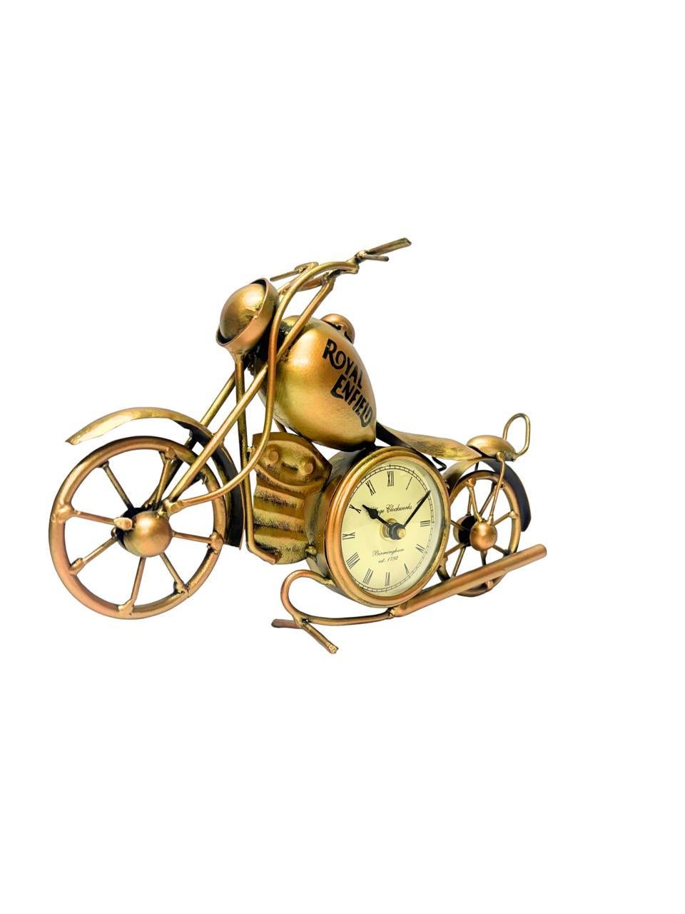 Metal Handprinted Golden Colour Bike Table Clock Showpiece