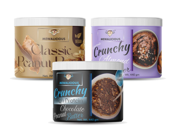 Enjoy the wholesome goodness of Mewalicious Peanut Butter, made from premium-quality peanuts for a rich, creamy texture and authentic taste. Preservative-free and 100% vegetarian, it’s perfect for healthy breakfasts, snacks, or fitness nutrition.