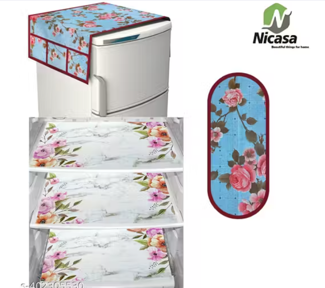 - Set Includes: Fridge Top Cover, Handle Cover & Fridge Mat