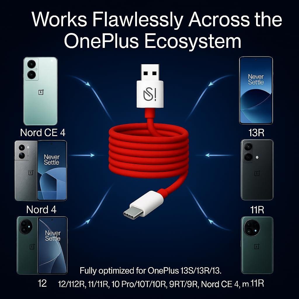- 🎁⚡【100WSuper Vooc Charger】:for Oneplus charger uses smart chip. when it star charging your phone displays “Super Vooc charger” to quickly charge your phone. It allows charge for Oneplus mobile phone from 1% to 42% in about 12mins. That will bring you unbelievable super faster experience.