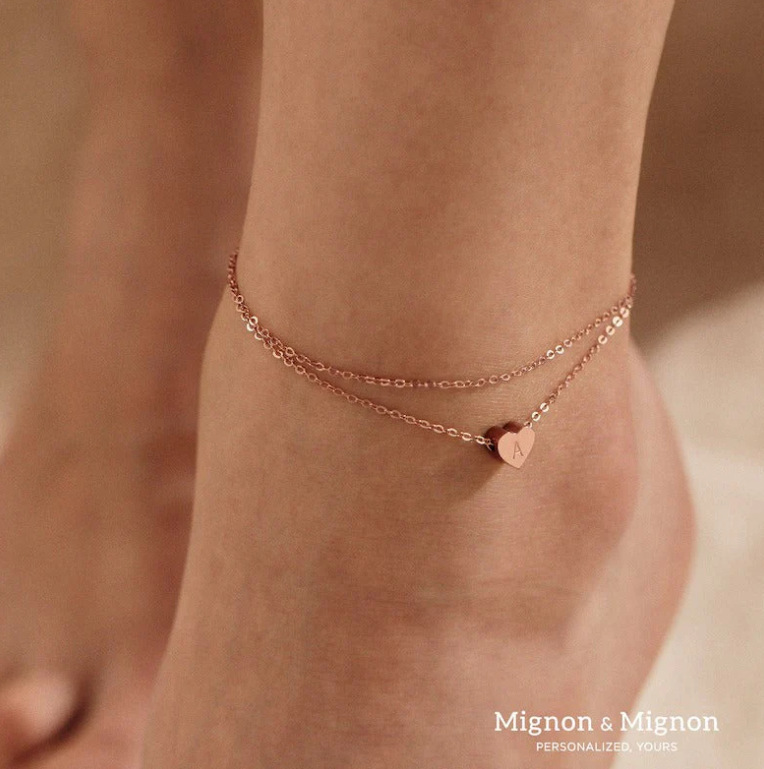 Personalized Anklets for Women Ankle Jewelry Gift for Her Initial Foot Bracelet Birthday Gift for Her Dainty Heart Summer Beach Jewelry
