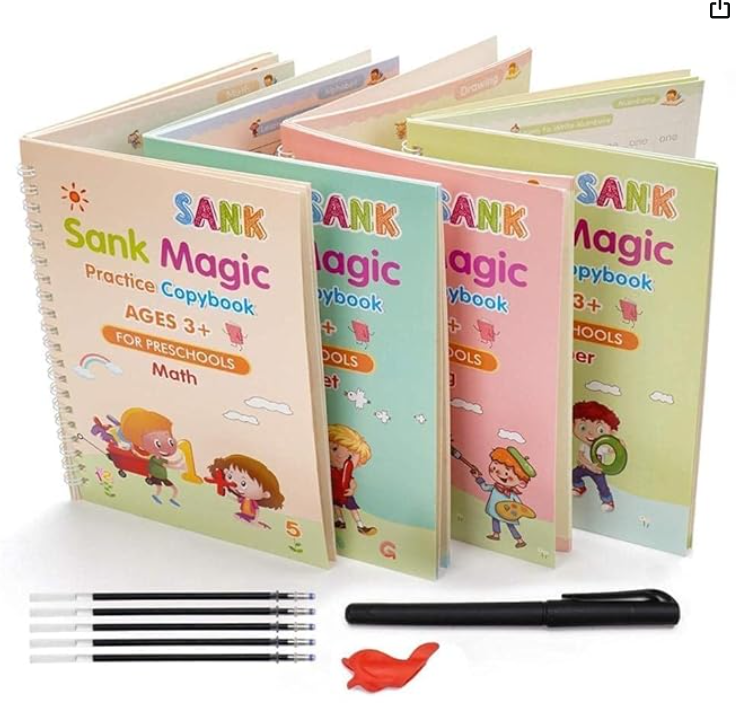 Piler Sank Magic Practice Copybook Set for Preschools, Ages 3+, with Pens, Math and Writing Workbooks